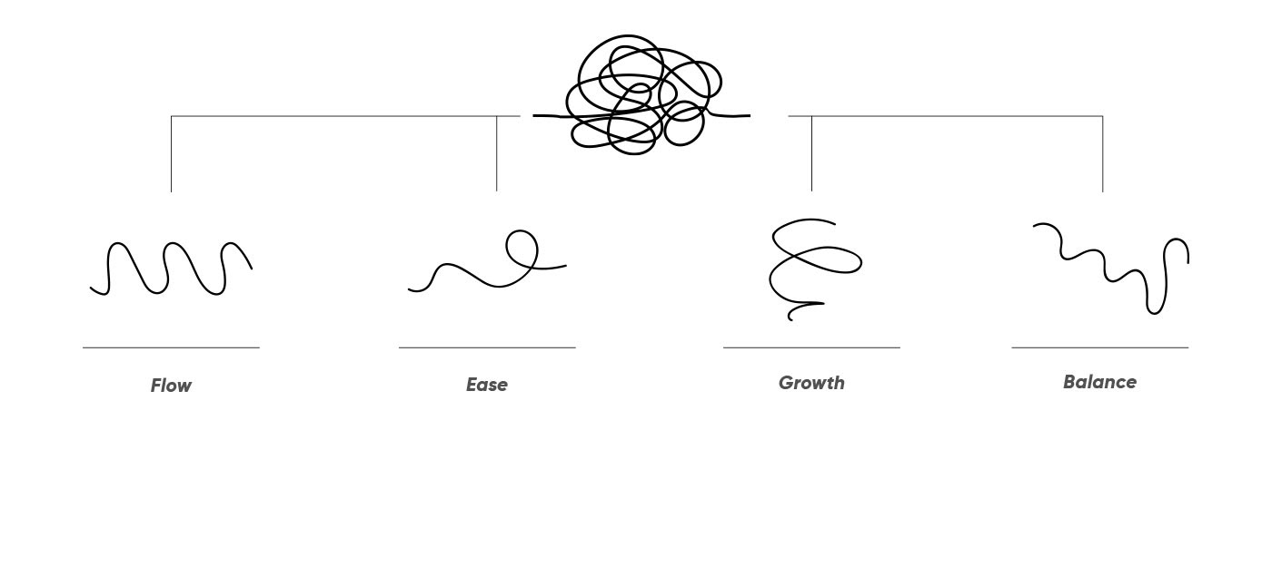 The Problems: represented by stress, tension, negativity, and pressure, these are the issues that often overwhelm individuals and hinder their well-being.